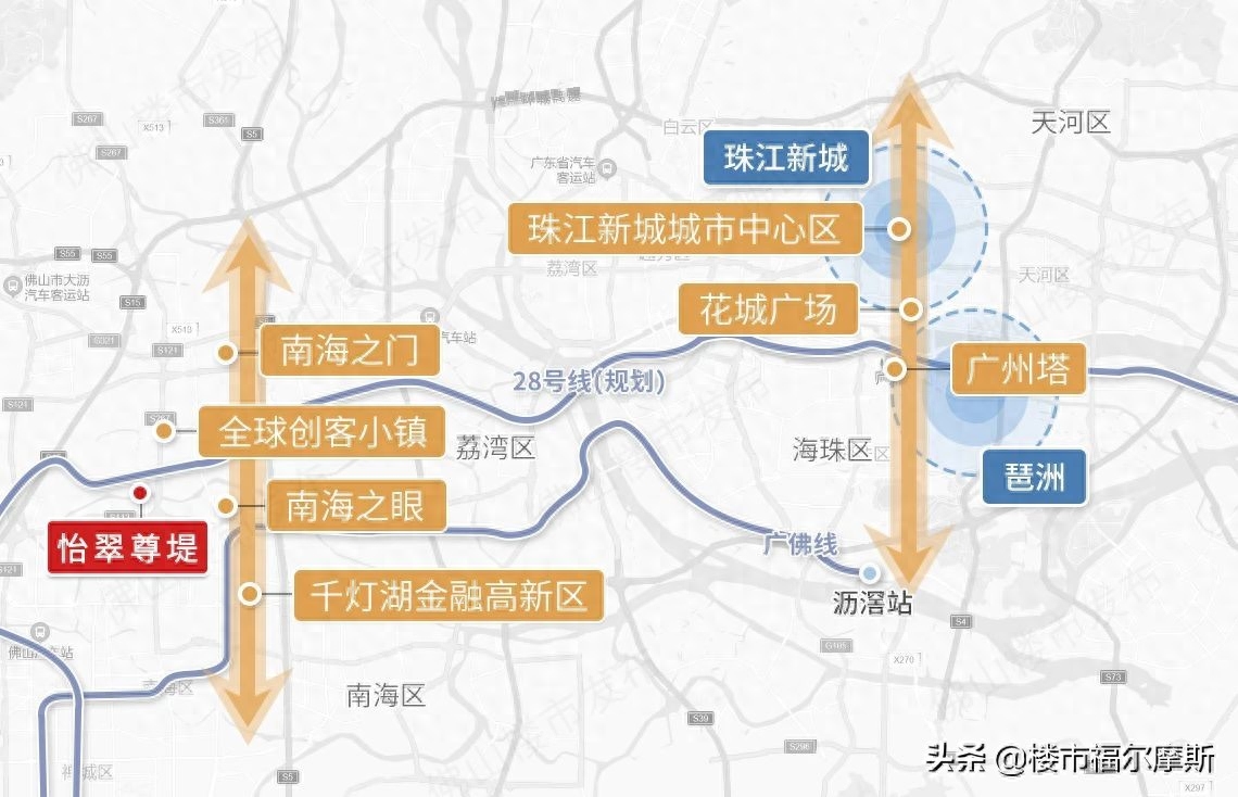这条速度达160km/h的湾区大动脉,将串联琶洲、白鹅潭、千灯湖、佛山新城等极具含金量的板块,形成更强的资源集聚效应。