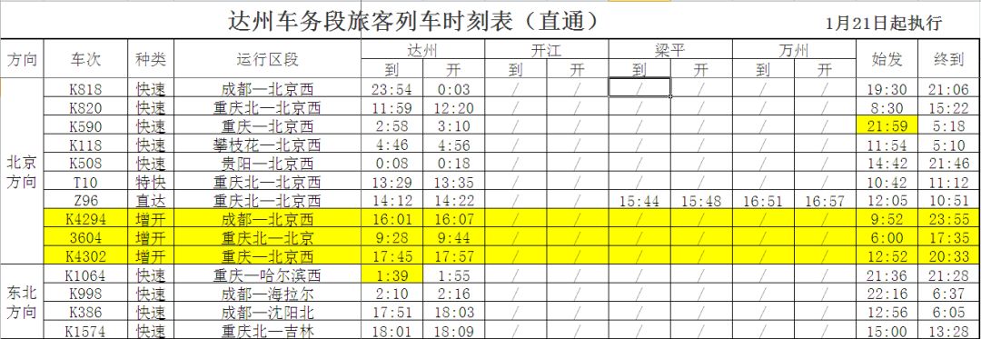 成都—北京西K4294,重庆北—北京3604,重庆—北京西K4302。