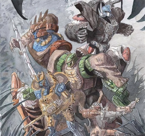 别看犀牛勇士一次金属变体进化也没赶上,身边的队友形态几乎换了个遍,唯独他自己还是始终如一,而他却如同定海神针一般,在黑猩猩不在的时候,牢牢地为巨无霸守住最后的希望,绝对是一个精彩的人物。在他身上,依稀看到G1时代多位汽车人的影子,他有千斤顶的头脑和大胆,有铁皮的老派和忠诚,还有钢锁的彪悍与霸气,他黑化后的表现甚至有威震天的手段。黑猩猩有这样的队友帮衬,实在是他的福气。