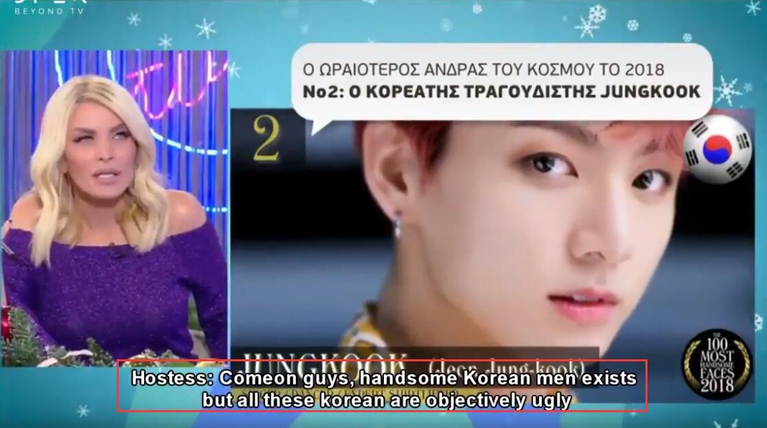 希腊当地时间4日,一个希腊节目中一位主持人对榜单排名进行了一系列的评论,而这些评论大多都围绕着韩国的明星。主持人和一些在场嘉宾对韩国男明星的评价都很负面,尤其是主持人卡特雷娜(Katerina)的发言让粉丝们愤怒。