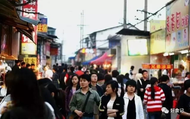更好玩的是,大学四周的美食基本是聚集一处,哪怕是一条再破落的小街,都能自成气候,常常被学生们堵的水泄不通。
