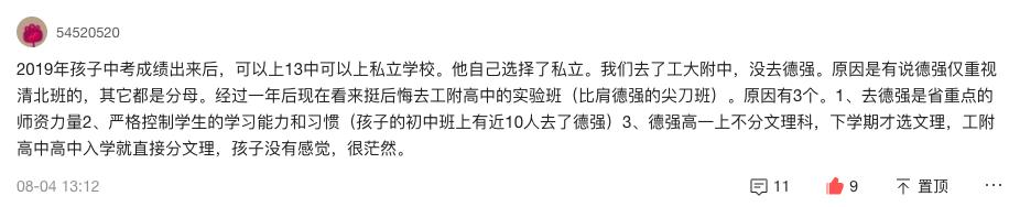 这两天写了一些关于德强高中的一些基本情况的介绍,是一些德强高中的学生在知乎上的帖子,我只是做了总结,正反两方面都有。这几个文章的留言有几百条,而留言是两个极端,同样说德强高中的好的特别多,关于清北班、平行班、学校的收费、老师的管理褒贬不一。