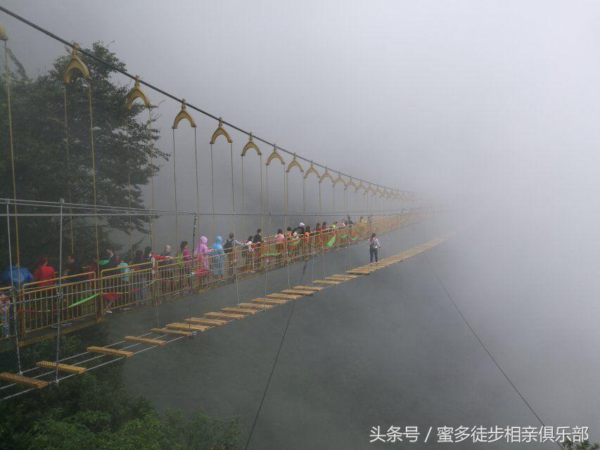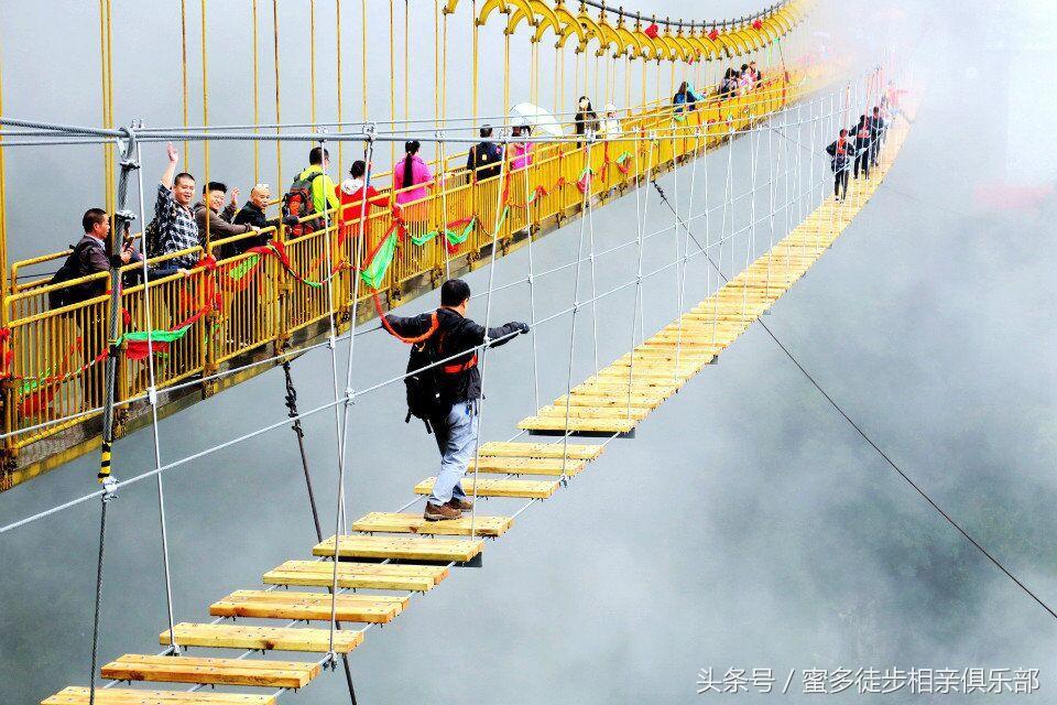 走过玻璃栈道的徒友总是感觉没有想像中的惊险刺激,不过瘾!对很多喜欢户外的徒友来说,不到九皇山去走走云中情人桥,那肯定是一大遗憾哈!不过要注意了,我们说的云中情人桥,是指平行于情人索桥,横跨于两山之间,落差约300多米的悬空步道,这是九皇山风景区刚刚开通的一个户外体验项目,据说这座天桥才真正把很多人的腿吓软了!估计敢上去走走的都绝对是胆大的,吃瓜的群众去围观一下呐喊助威就好哈!