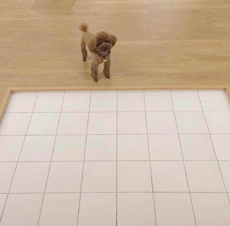 入户门口模仿日式打造了一个凹区,铺上小白砖挺有仪式感的。出镜的是屋主养了五年的小狗狗lulu。