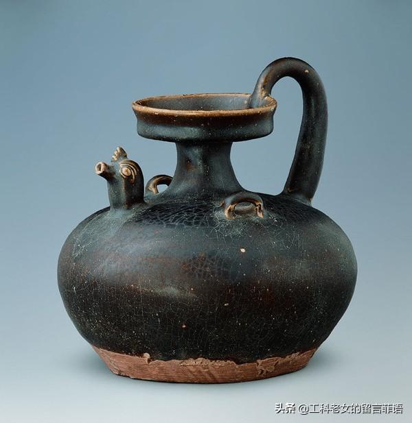 此壶属于黑瓷,是在青瓷基础上发展起来的。黑瓷釉料中铁含量高(比青瓷釉料中的铁含量高),越高烧成后颜色越黑。