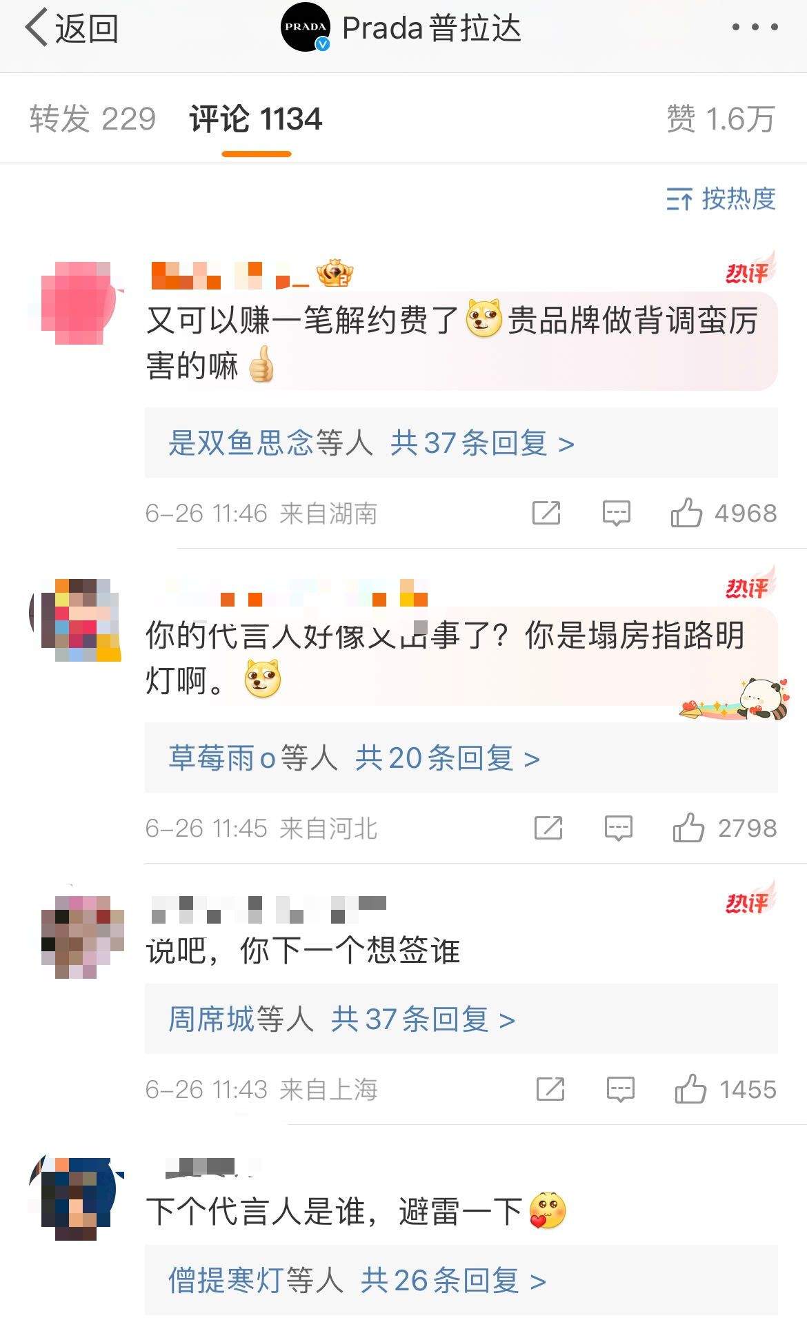 在微博热搜话题#Prada代言人#评论区内,也不乏“中国区收入主要靠天价违约金”“今年的KPI由代言人自掏腰包完成”等留言。截至发稿,蔡徐坤与Prada均未对此作出回应。