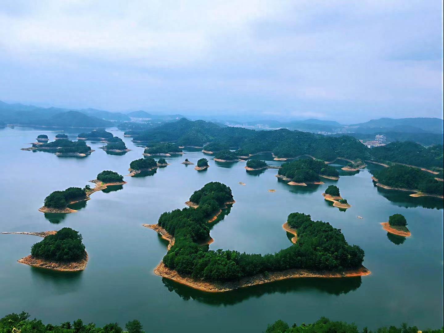 千岛湖位于浙江杭州淳安县境内,是为了建新安江水库而形成的人工湖,又名新安江水库。于1955年开始始修建,到了1960年就基本上建成了。水库坝高处约105米,宽度约462米,水库长约150千米,最宽处达10余千米,最深处超过了100米,平均水深是30.44米。这里湖岛众多,而且水质非常好,是国家首批的5A级风景区。在正常水位情况下,约覆盖了580平方千米的地区。