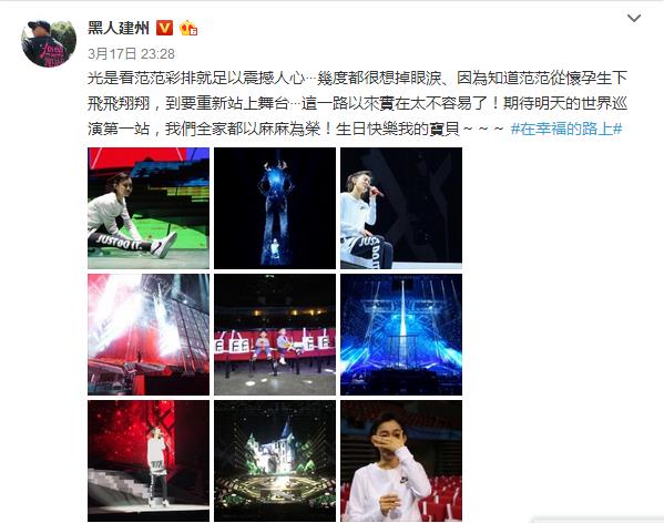 深圳演唱会那天,正是范范范玮琪生日,黑人陈建州提前一天17日在微博给爱妻送上生日祝福,并表达出爱妻這一路以來實在太不容易了,浓浓的爱意溢于言表。