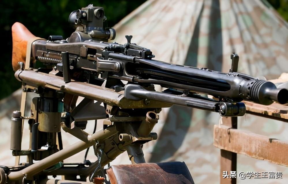 MG-42通用机枪为二战好机枪,拥有超强的杀伤力,堪称“步兵的噩梦”。MG-42通用机枪为纳粹德国于1942年研发并且就役,大的特点就是射速极快,被称为“希特勒的电锯”。该枪理论射速为800-900发/分,最快时可达1500发/分,达到了单管机枪的巅峰。碗口粗的大树都能打断;有两根备份枪管,一旦枪管过热可迅速更换。作为轻机枪使用时,有效射程为800米;作重机枪使用时,其有效射程为1000米。其可靠性和压制能力极高。换枪管非常方便,只需要几秒钟的时间。