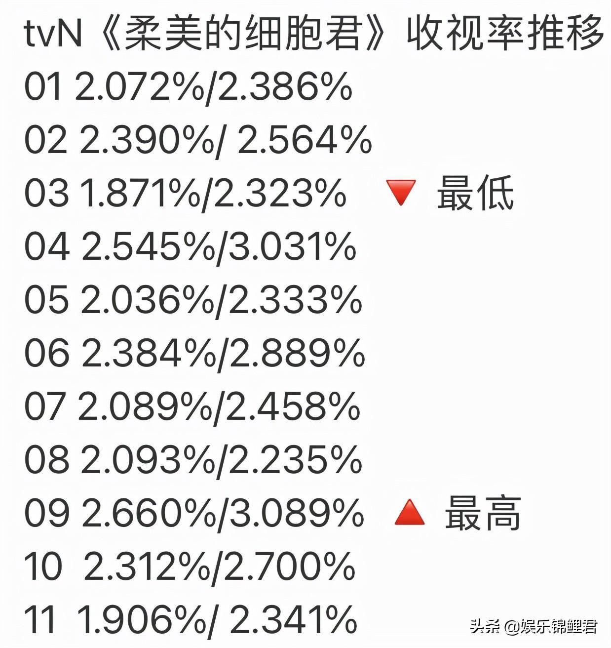 金高银的演员生涯危机爆发了,作品又又又失败了!她的最新电视剧《柔美的细胞君》改编自点击率30亿人次的热门漫画,还是周末黄金档播放,但是收视率低得可怜,一直在2%左右徘徊。