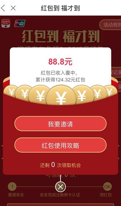 现在通过邀请链接,安装银联推出的手机APP云闪付。还可以领取8-2018元的现金红包!小编今天早上就非常幸运,领取到了88.8元的红包!