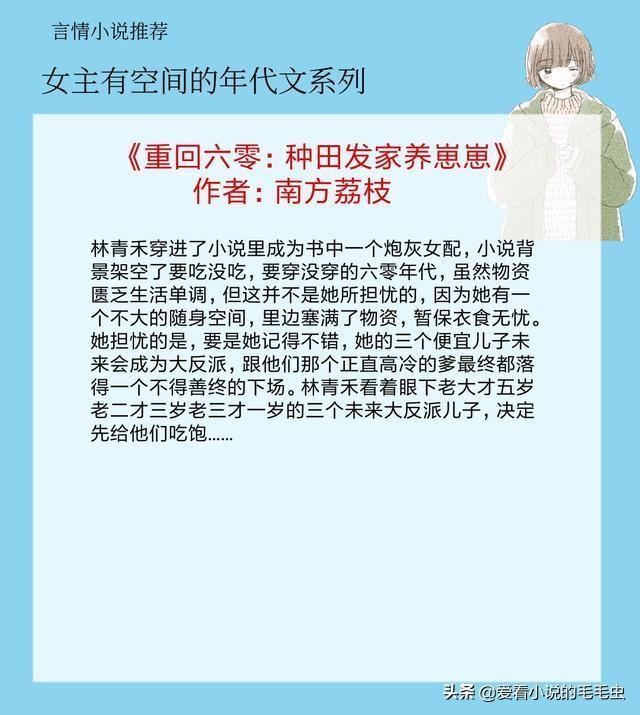 大家好,我是毛毛虫,今天推荐5本女主有空间的年代文宠文,《六零年代好家庭》男女主互动超甜