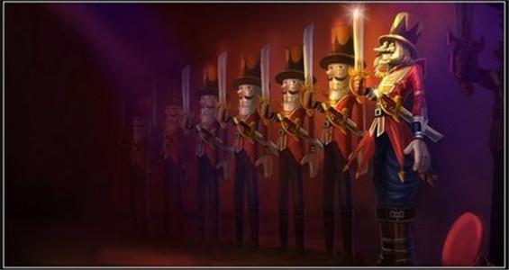 2010年圣诞节(国服是冰雪节限定)限定皮肤。冰雪节限定不做特效真是可惜。人物模型不错,是一个玩具兵,很有小时候看童话书里玩具兵的感觉。