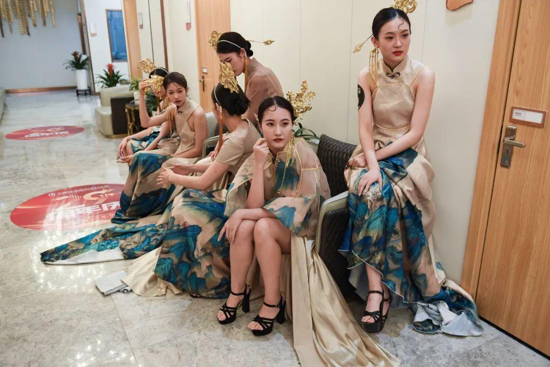 安徽省国际胸模大赛从2011年举办以来,已经成功举办了11届,作为一个知名美丽赛事,它已经在国内产生了广泛的影响。本届赛事由安徽经视、合肥华美整形外科医院联合主办,大赛自4月3日启动以来,吸引了全国各地近千名女性报名参与,在经过层层海选、初赛、半决赛和拉票赛比赛之后,最终12位参赛佳丽脱颖而出进入总决赛。图为佳丽们在候场。