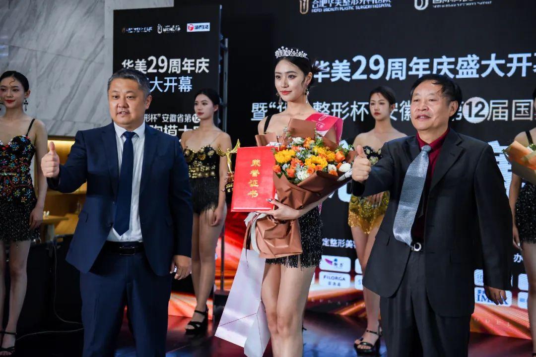 比赛从下午2时开始,经过两个多小时的激烈角逐,评审团经过综合形象气质、舞台风采、现场表现、个人魅力等方面评选,“华美整形杯”安徽省第12届国际胸模大赛冠亚季军终于揭开神秘面纱,最终7号选手舟舟、9号选手轩轩和3号选手涂月秀分获冠亚季军。图为主办方给冠军佳丽颁奖。