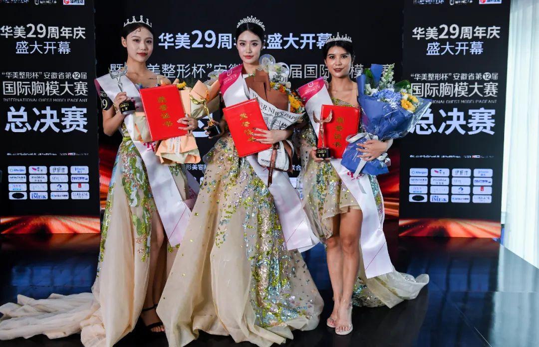 8月26日,合肥迎来了一场绚烂夺目的视觉盛宴,第12届"华美整形杯"安徽省国际胸模大赛总决赛举行,12位来自全国各地的佳丽经过三轮角逐,最终7号选手舟舟夺得冠军,9号选手轩轩获得亚军,3号选手涂月秀获得季军。图为冠军舟舟(中)亚军轩轩(左)和季军涂月秀(右)合影。