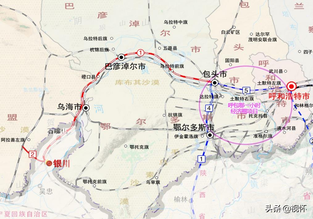 其次来讲讲十四五时期内蒙古要建设的另外5条高铁:其中包鄂高铁连接包头至鄂尔多斯,线路全长约150km,规划设计时速350公里,目前仍在积极推动前期工作阶段。