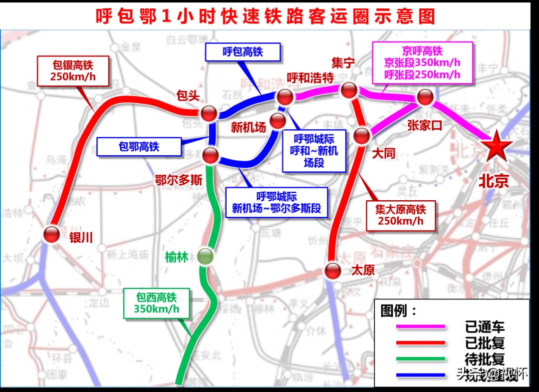 呼包高铁连接呼和浩特与包头,途经萨拉齐、察素齐等地,全长183.7公里,规划设计时速350公里,目前也是处于预可研阶段。