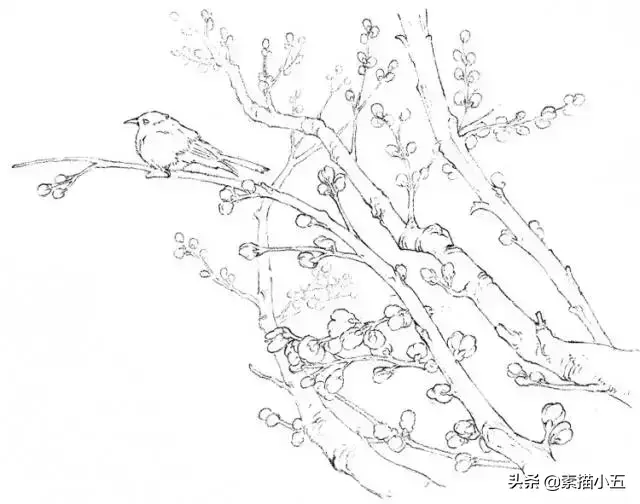 腊梅开花时叶子还未长出,所以一般以画枝干为主