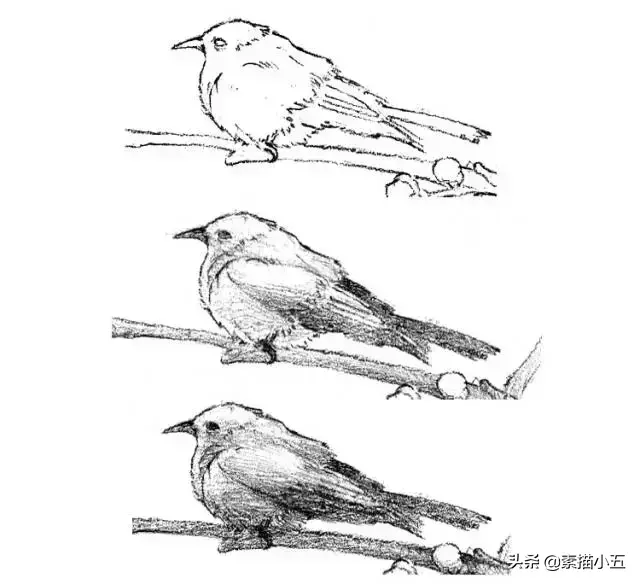 ▲画鸟STEP2找出大明暗关系和较深的部位。