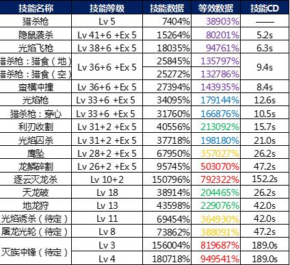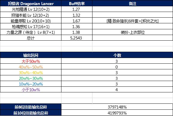 4、根据各技能输出能力的不同,为了方便比较,在此列出各技能所属的输出区间。技能所属的输出区间列在技能数据汇总下方。