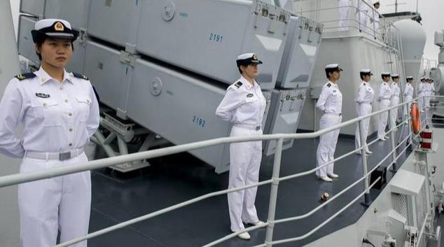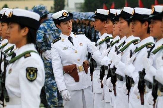 海军军装的颜色就好像美丽的大海一般的纯净清爽,女兵们换上海军军装,个个挺拔坚挺而有气场。