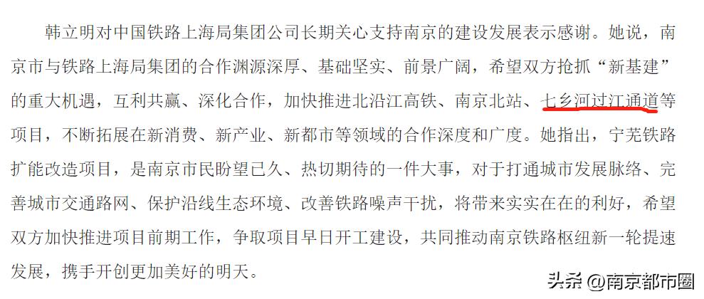 所以,在2020年3月底的签约仪式上,韩书记也主动提到了要加快推进北沿江高铁、南京北站、七乡河过江通道等项目,不断拓展在新消费、新产业、新都市等领域的合作深度和广度。
