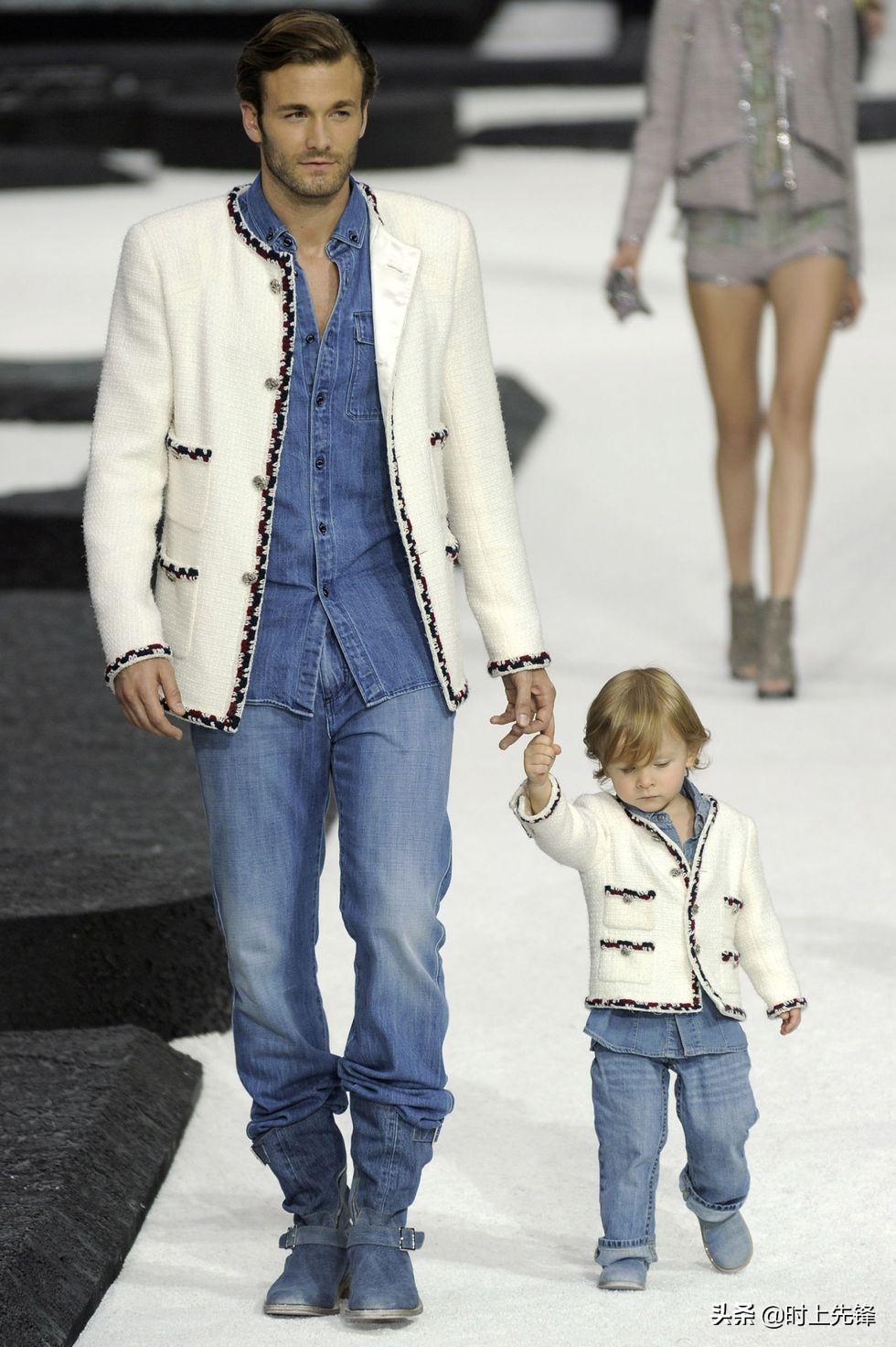 2010年10月,2岁的Hudson抓着爸爸Brad的手指,在巴黎时装周登上人生的第一次秀台,和爸爸穿着Chanel2011春季系列父子装的Hudson十分可爱。