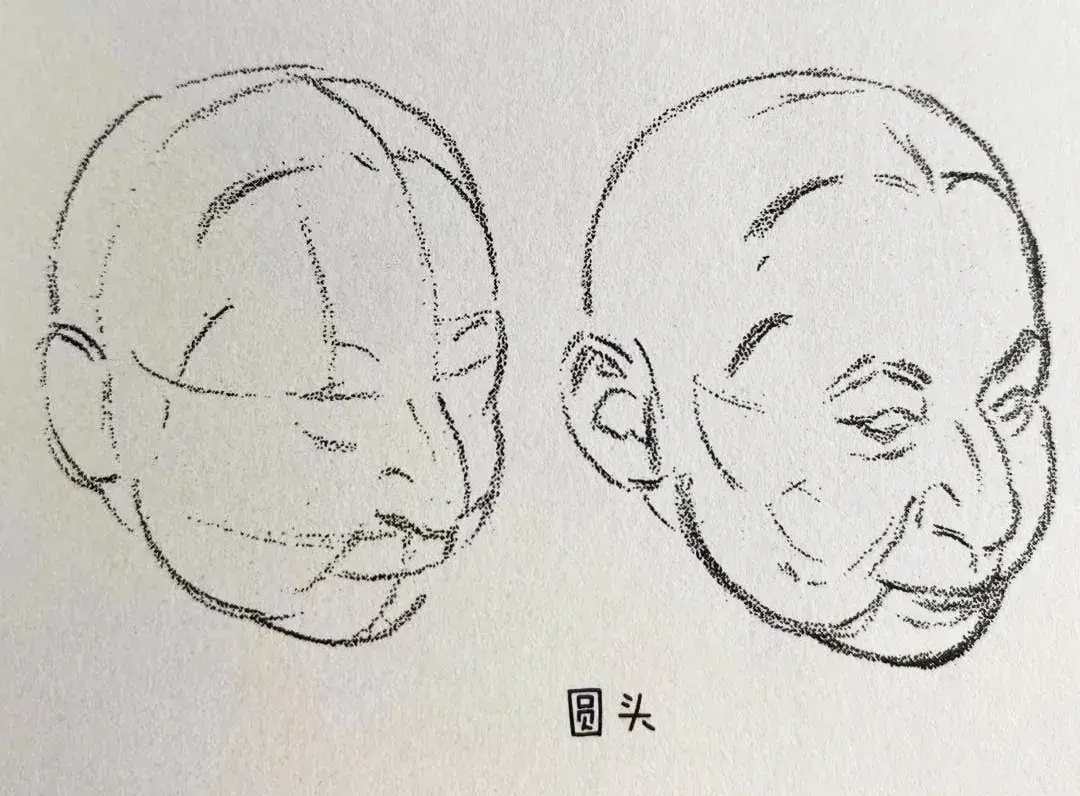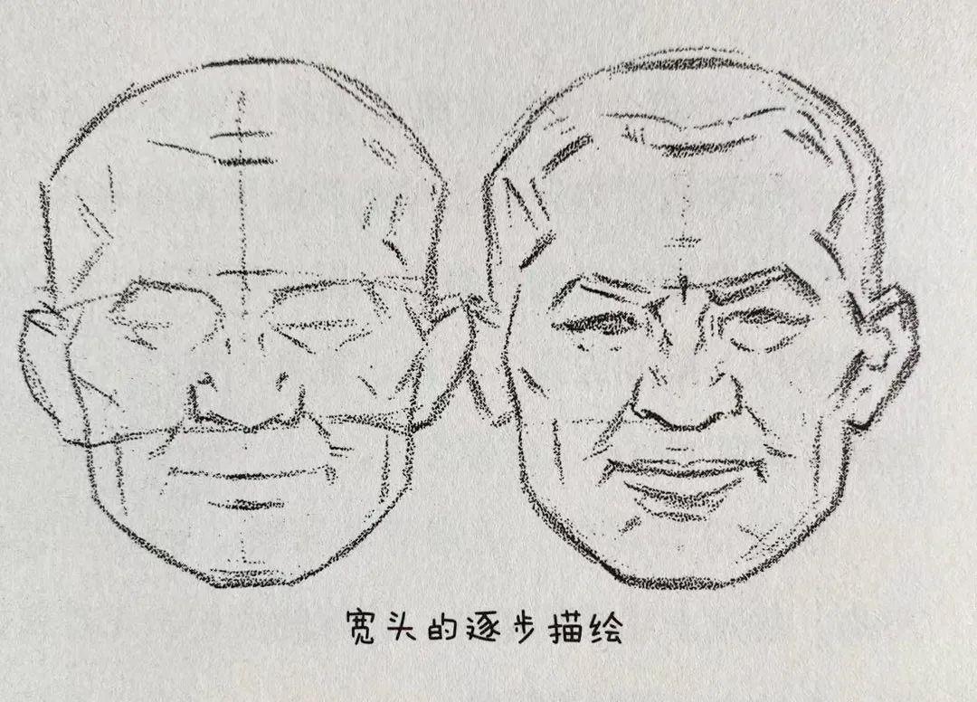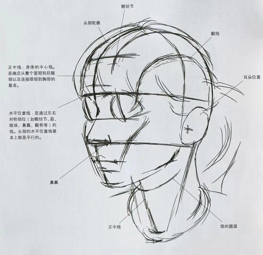 ②使用基准线来确定头的构造,把握形态。