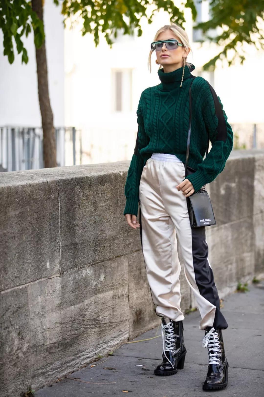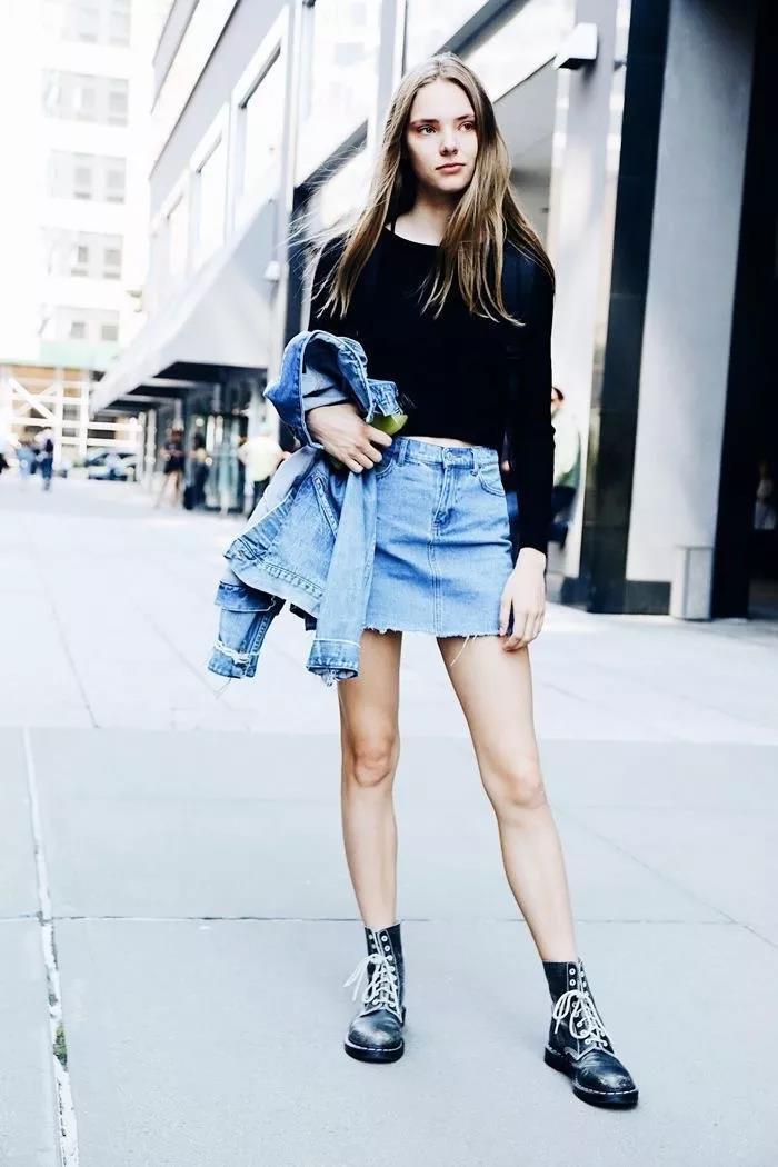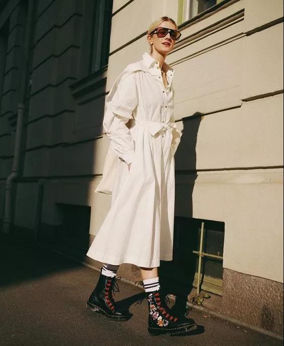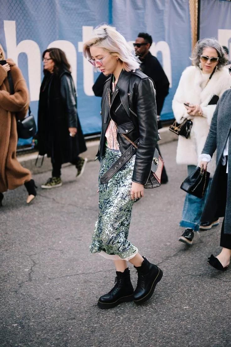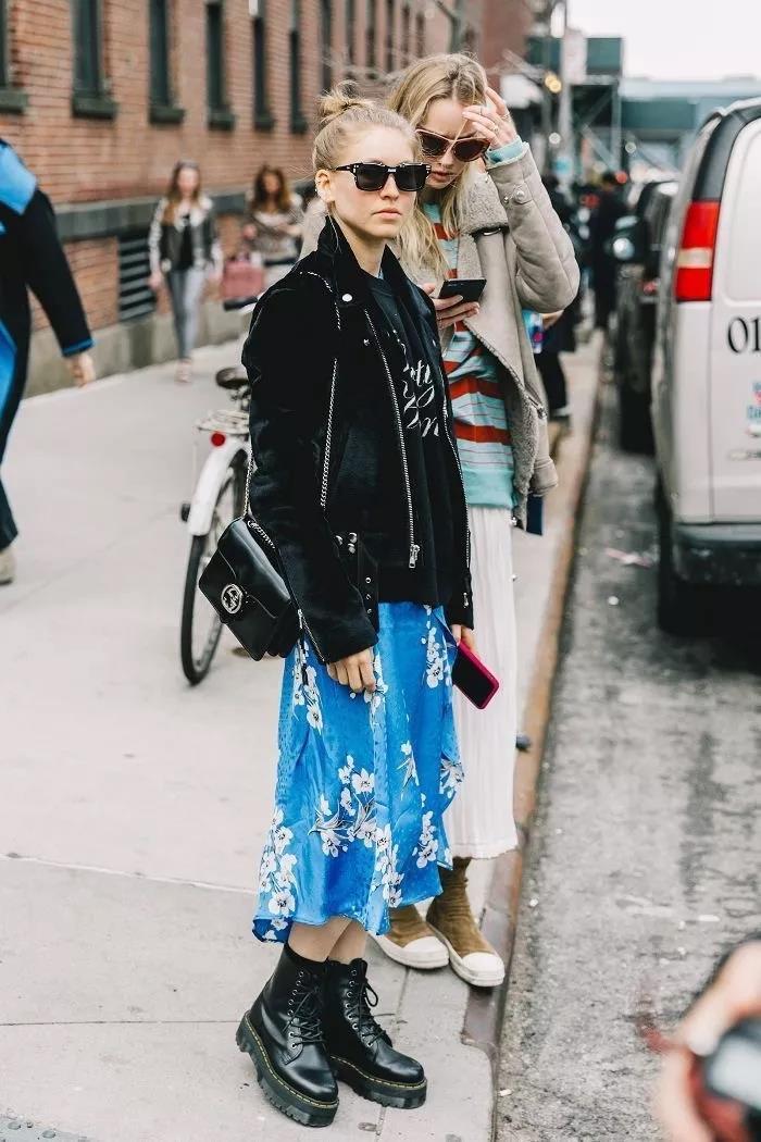 如果说裤装+马丁靴是帅气街头风,那么裙装+马丁靴则是帅气中透露着一丝丝性感。