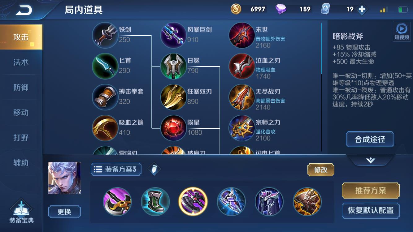 出装方面:强烈建议将无尽之刃、暗影战斧为主要核心。建议第一件装备先出暗影战斧,看战况在第2-3件装备时再出无尽之刃。