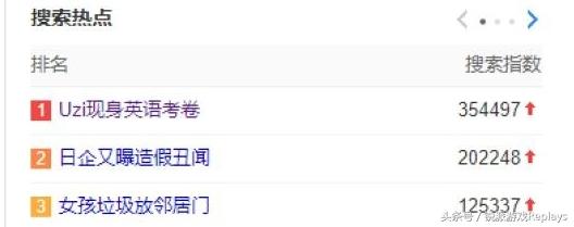 近日有网友发现UZI惊现热搜榜第一,搜索指数蹭蹭上涨,很多认识的不认识的知道他不知道他的人都会点进去看看,到底是什么样的人现身英语考卷?