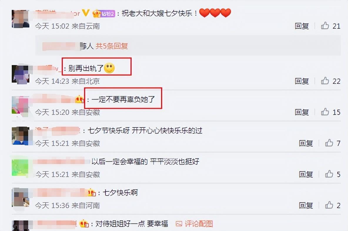 对于甜甜蜜蜜的两个人,有网友表达祝福的同时,还有网友提醒于晓光:“别再出轨”“一定不要再辜负她了”。