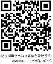 按照交通运输部防疫期间运输工作要求,所有旅客快捷扫码登录《防疫期道路水路旅客信息登记系统》填报乘客出行信息,实行信息核查快速化、电子化,为全国新冠肺炎疫情防控工作提供有力的支撑。