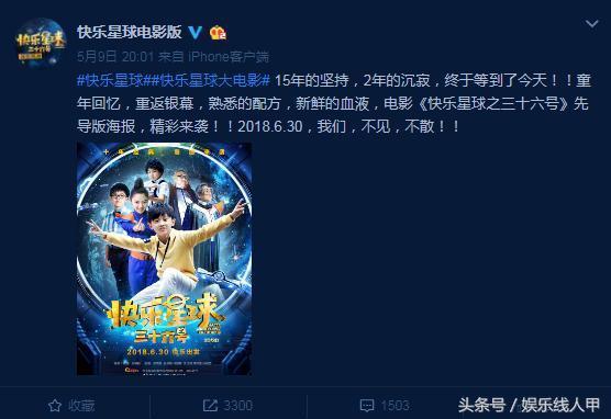 时隔15年,今年5月9日,《快乐星球》大电影《快乐星球之三十六号》发布定档微博,宣布电影版定档6月30日。