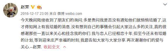 其实赵霁本人也透露过,自己与恋人相爱已经十年,快要结婚了,虽然时间还没定,但相信到时候会通知大家的。