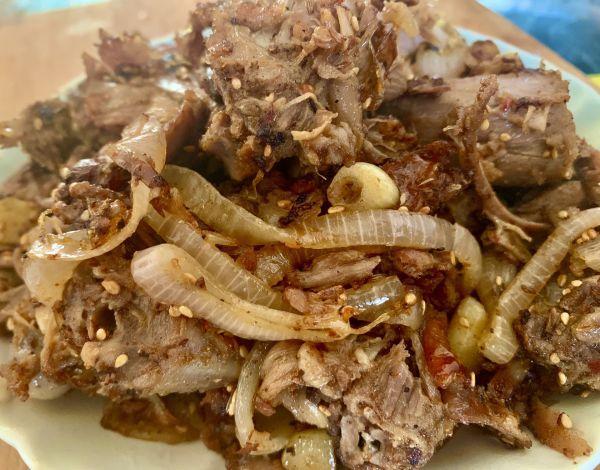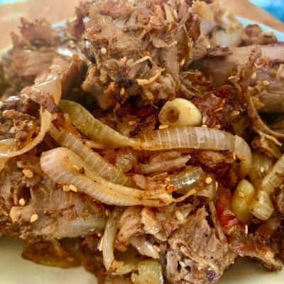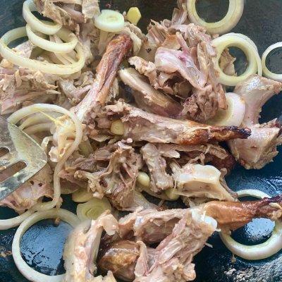 烤鸭剩鸭架 一只洋葱 半个姜 3片蒜 5瓣食用油 适量酱油 2勺鸡精 适量十三香 三分之一勺干辣椒粉 1勺花椒 10粒胡椒粉 适量料酒 3勺椒盐食量 一勺盐 半勺白糖 2勺白芝麻 1勺