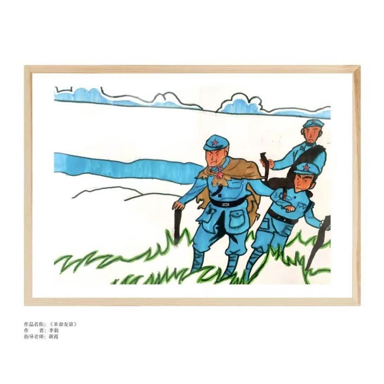 活动中,同学们人人参与、个个动手,通过广泛收集红色资料,他们认真构思、精心设计,创作出了一幅幅内容丰富、形式多样的主题绘画作品。历经近一个月的策划、创作、布展,评委组从内容选择、版面设计、色彩插图等各方面进行综合评定,最终评选出“优秀作品奖”100幅,其中31幅入选“最佳作品奖”。