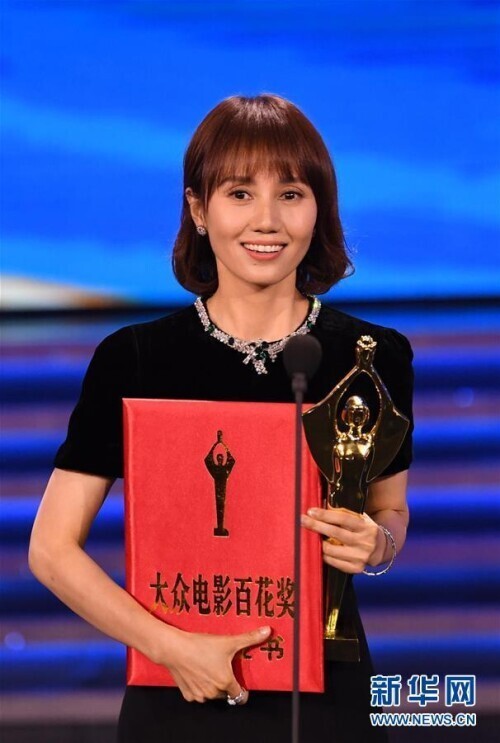 9月26日,袁泉凭借影片《中国机长》获得最佳女配角奖。 当日,第35届大众电影百花奖颁奖典礼在河南郑州举行。 新华社记者 朱祥 摄