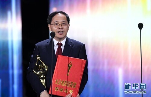 9月26日,影片《流浪地球》的导演郭帆获得最佳导演奖,这是颁奖仪式现场。 当日,第35届大众电影百花奖颁奖典礼在河南郑州举行。 新华社记者 朱祥 摄