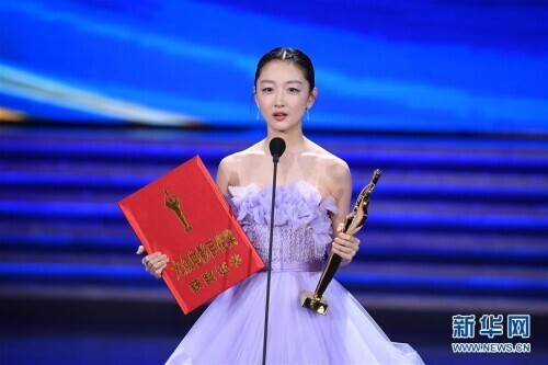 9月26日,周冬雨凭借影片《少年的你》获得最佳女主角奖。 当日,第35届大众电影百花奖颁奖典礼在河南郑州举行。 新华社记者 朱祥 摄