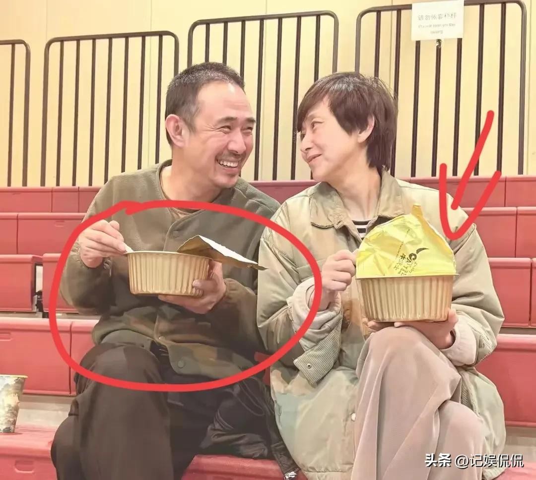据悉,这张照片是夫妻俩演完话剧后,在台下吃饭的定格画面。