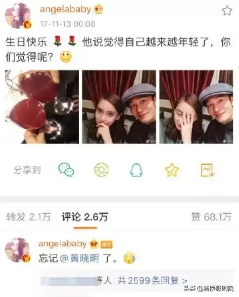但也只发了四个字“生日快乐”外加一个生日蛋糕的表情,随后黄晓明也在评论区回复Baby“谢谢老婆”。