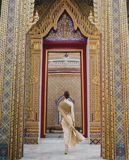 不得不说,身穿泰国服饰的Taew看起来很美,给人一种温婉娴静的气质。尤其正面拍摄的Taew,好美啊!