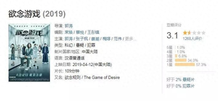 在这样的状况之下,当年一起演戏的郭涛似乎嗅到了危机的味道,导演梦也开始蠢蠢欲动。于是他拉来了当年一起出演《疯狂的石头》的王迅,以及梅婷和张子枫两位演技派,搭上《流浪地球》引领的硬科幻顺风车,推出了这部《欲念游戏》,万事俱备,或许连郭涛本人都没有想到会惨败至此。如今《欲念游戏》上映10天,票房仅700多万,豆瓣评分3.1,排片和上座率更是惨不忍睹。