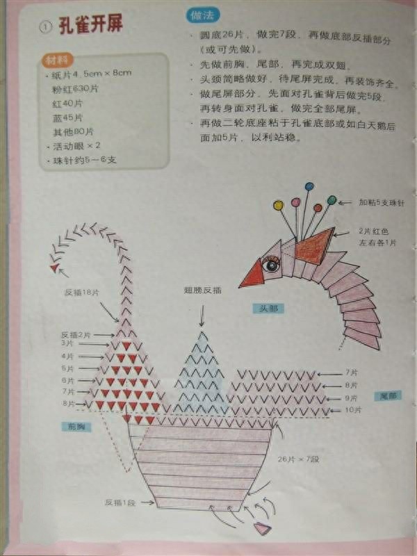 小小的三角插纸,只要数量多,就能拼出一只超美的孔雀,附教程