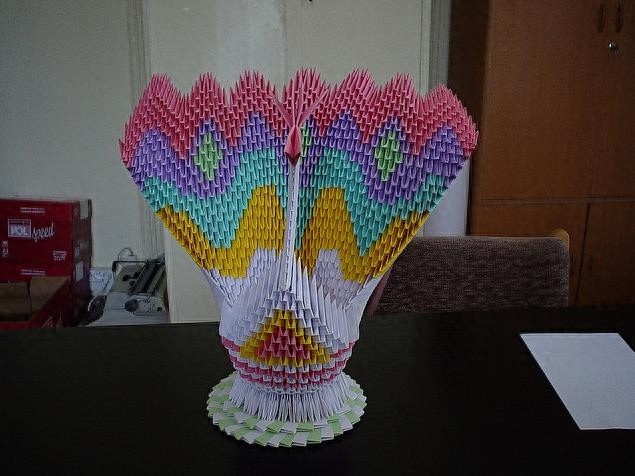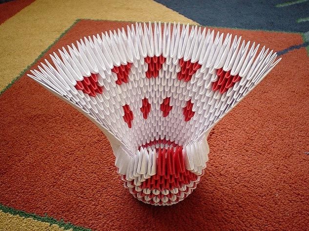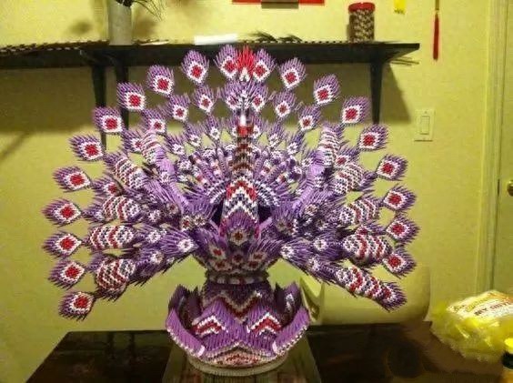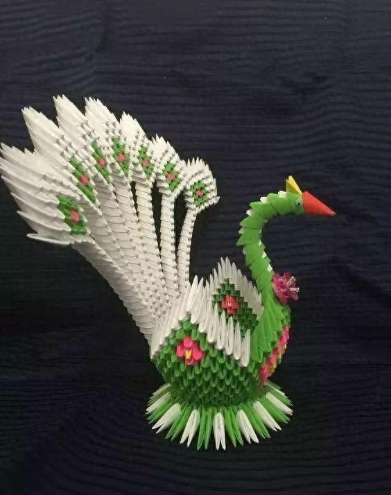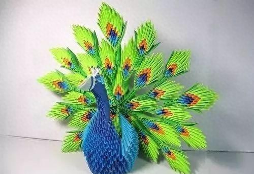 三角插孔雀成品确实是美,要折这样一只孔雀,任务也是艰巨,需要折取很多个三角插,大家要有耐心。不过越是难以完成,完成之后就越有成就感呢。