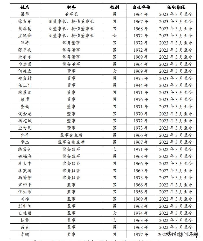 华为的董事、监事及高级管理人员共31人。1987年创立华为后的元老,除了80岁高龄的任正非,还剩一人郭平,出生于1966年,1988年加入华为,现任公司监事会主席。性别上看,有包含孟晚舟在内的5名女性成员。