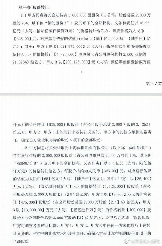 除了发长文喊话,这位网友还晒出8张图,其中包括盖公章的股份转让协议书和有杨幂签名盖章的承诺书。