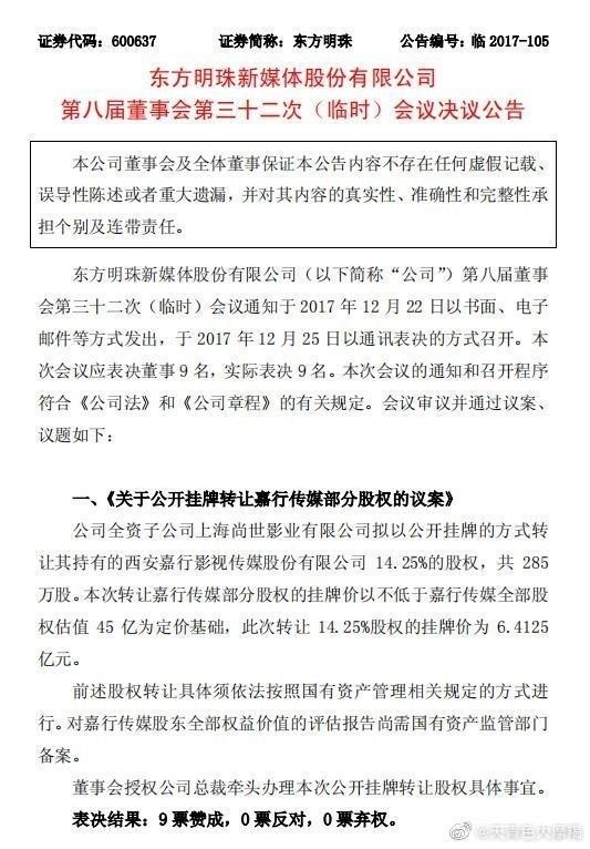 证据四(图5)上市公司东方明珠2017年12月27日公告,嘉行传媒估值仅为45亿